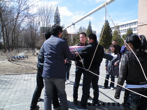 4月1日中午,我院学生会组织全体干部在物理楼后进行了学生骨干培训系列——心理行为训练活动。