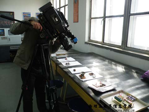 4月22日早九点,内蒙古卫视晚间报道记者来我院采访我院关于学生学术科技创新成果及义务维修活动情况。张伟老师带领学生会及科技协会成员参加采访。记者先后参观了家电维修部与yl23455永利集团创新实验室,实践与创新实验室始建于2004年,旨在为爱好电子设计与制作的同学提供一个舞台,为我们学有余力的同学提供了一个实践知识、提高动手能力的平台。赵佳哲、杨桂全、包文君、彭鹏分别介绍了此次学术科技创新活动获奖成果,记者也对实验室的陈列项目产生了浓厚的兴趣。大家被科技的魅力深深吸引着以至于一个小时的时间不知不觉过去了,我们相信在全体师生的努力下,我院学生的学术科技创新成果一定会加辉煌!