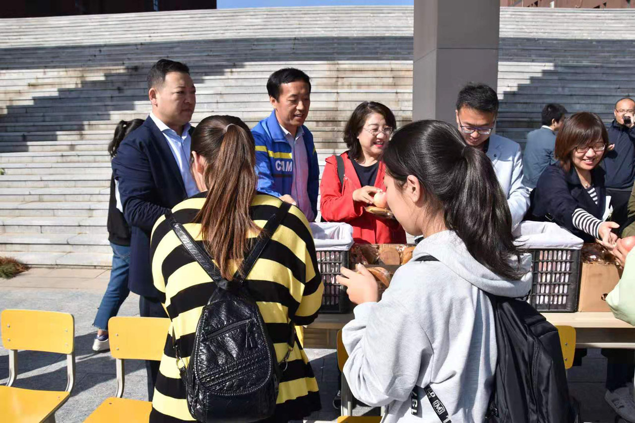 2019年9月13日上午,我院于理工楼小广场前举办了yl23455永利集团中秋节慰问新生活动。学院党总支书记刘美玲、副院长曹永军、党总支副书记兼副院长张伟、副院长那日苏、2019级新生各班班主任、学就办、团总支老师与全体19级新生参加了慰问活动。