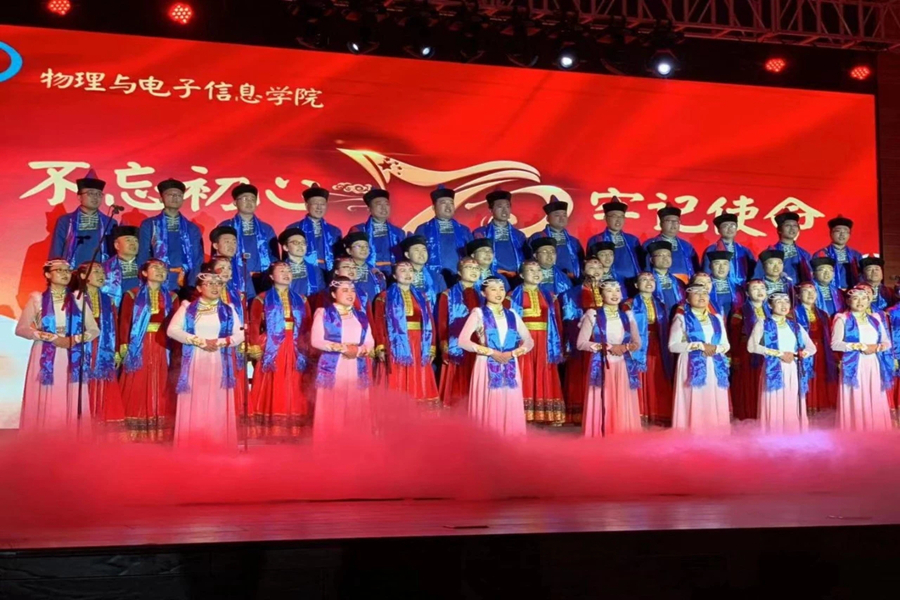 比赛在盛乐校区隆重举行。我院教职工身着民族服装,庄重朴素,一同唱响歌唱祖国的赞歌。“母亲是中华,五十六个民族亲亲一家”娓娓歌声道出全国人民团结一心的情谊,“我站在草原望北京,一望无际国泰安宁”雄浑气魄则唱出草原的豪情与美丽。当熟悉的旋律响起,当五星红旗飘扬上空,物电全体教职工及学生,共同献上对祖国70华诞的祝福与告白。