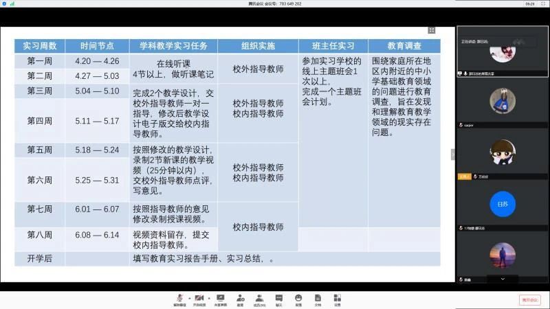 本实习动员大会为学院接下来在线实习工作的顺利开展奠定了基础。不仅使同学们对本次教育实习有了更深入的了解与认识,激发了同学们的实习热情,同时也有利于同学们树立正确的实习观,充分利用本次教育实习的机会实现自我升华。