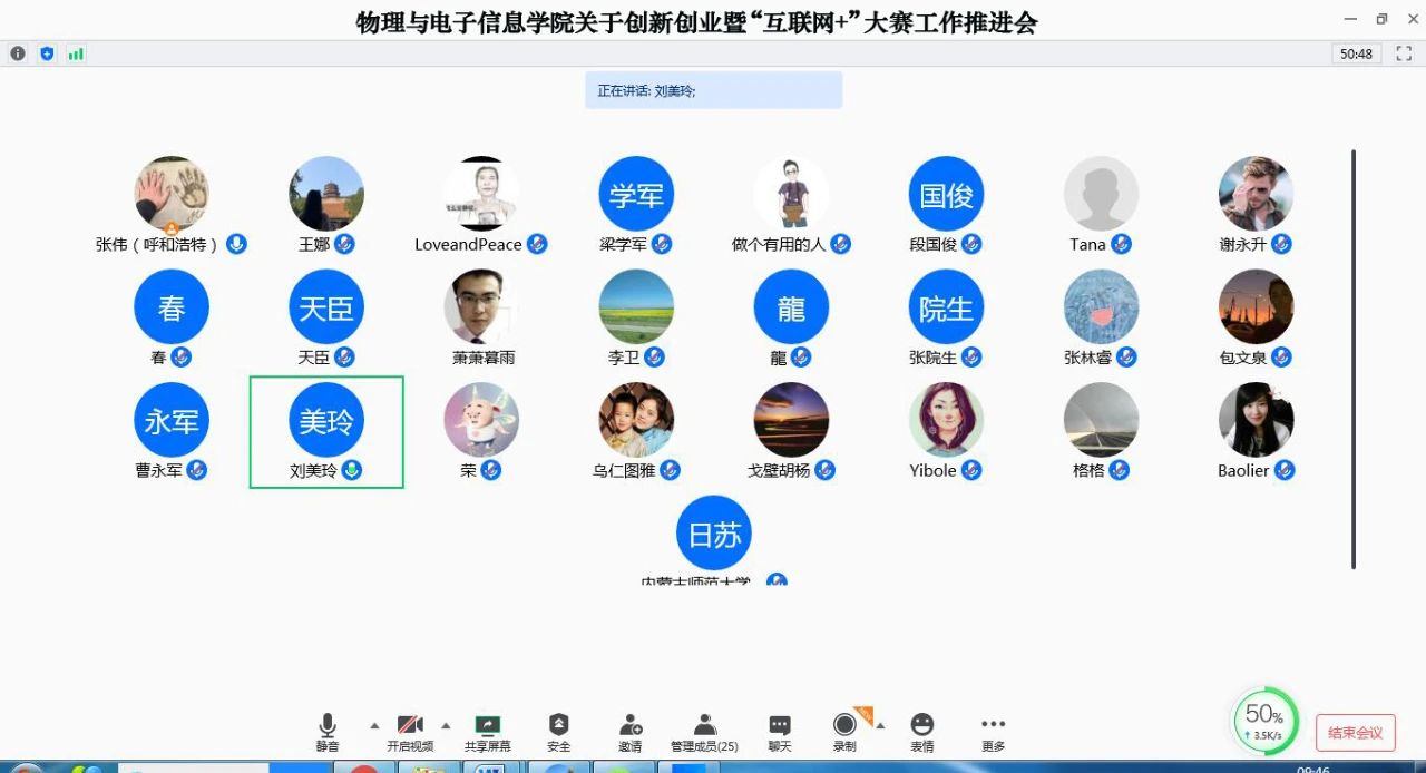7月14日上午9点,我院召开线上创新创业工作暨“互联网+”大赛工作推进会。学院党委书记刘美玲、副院长曹永军、副院长那日苏,创新实践部主任梁学军,本科生、研究生各班班主任老师,团总支、学就办、辅导员参加会议,学校招生就业处边建平老师受邀出席,会议由学院党委副书记兼副院长张伟主持。