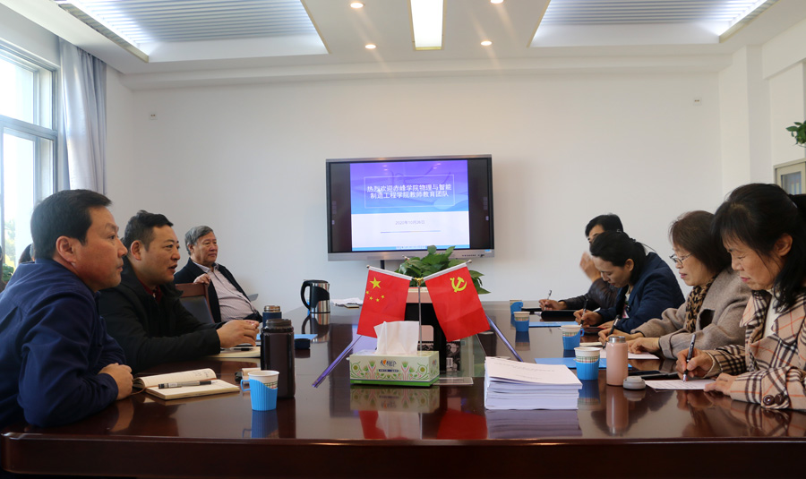 10月22日至23日,赤峰学院物理与智能制造工程学院尹辑文教授、杨晓辉教授、吕立君教授、柴万东教授一行9人来我院调研研究生教育培养工作。yl23455永利教师发展与教学评估中心副主任孟根巴根,yl23455永利集团吉日嘎拉教授,学院党委副书记兼副院长张伟及相关师生参加了会议。