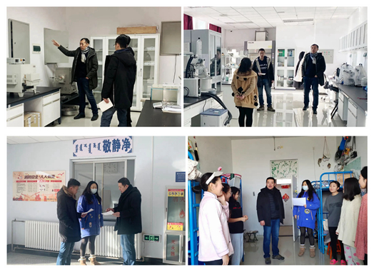 此次安全大检查分三组,第一组由学院党委书记刘美玲、副院长那日苏带队,检查了理工楼A座办公区、教室及本科实验室;第二组由副院长曹永军带队,检查了理工楼A、B座科研实验室;第三组由党委副书记兼副院长张伟带队, 检查了学生活动区及宿舍区。检查组就办公区、教学区环境卫生、通风、消杀以及疫情防控工作,实验室水、电、暖、火、危废品等安全隐患及落实安全管理规定,学生活动区、宿舍区等人员密集场所卫生状况、防疫情况及安全教育宣传等,逐一进行了安全检查。针对发现的安全隐患,要求列出整改台帐并在限期内完成整改。