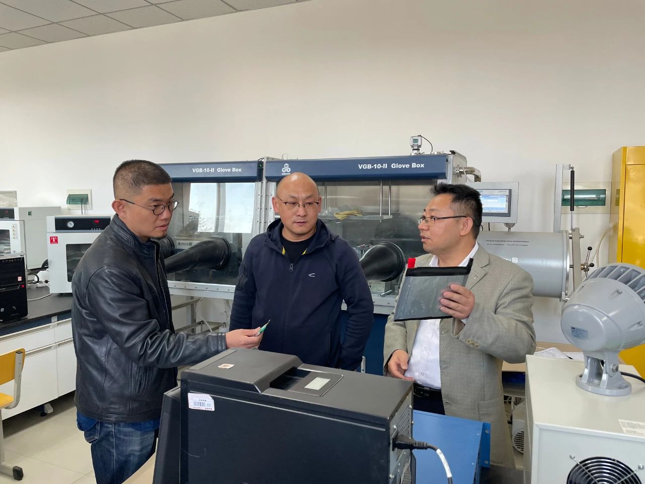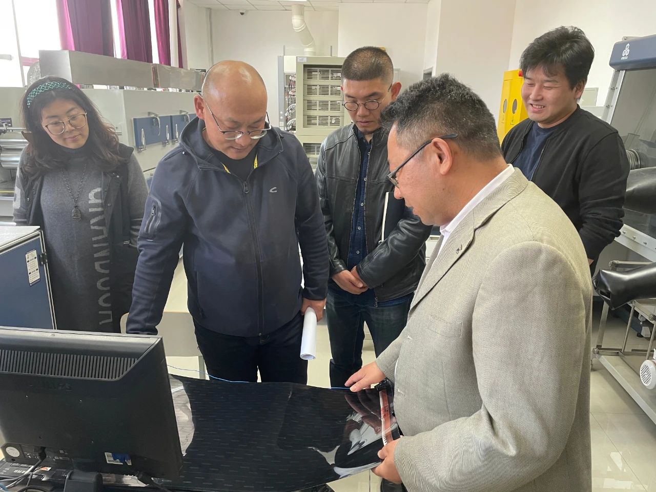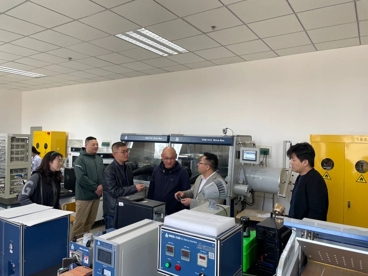 首先,工艺美术学院领导教师一行参观了自治区工程中心,工程中心李卫老师围绕锂电池技术实验室目前主要科研方向、科研技术以及科研成果进行了详细的介绍。随后,双方围绕目前实验科研成果及成果转化与应用方面进行充分交流。工艺美术学院的各位老师对我院目前锂电池技术实验室的科研成果进行了细致的了解后,结合产品设计、产品应用与包装,以及两学院双创工作进一步合作等内容进行了深入的探讨。