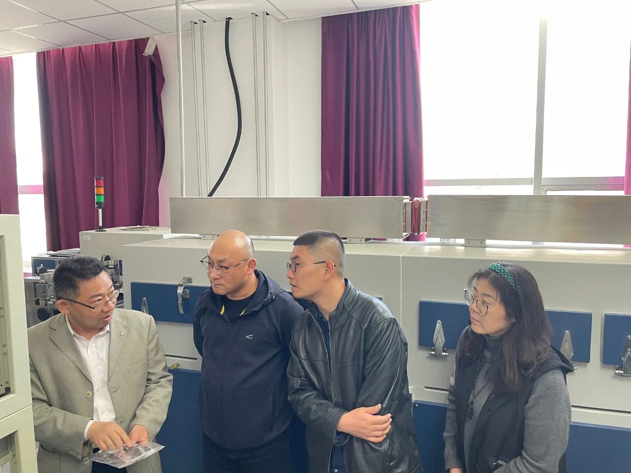 为深入贯彻全国教育大会精神,全面落实习近平总书记给中国“互联网+”大学生创新创业大赛“青年红色筑梦之旅”大学生的重要回信精神,加快培养创新创业人才,促进创新驱动创业、创业引领就业,加强各学院不同专业专创融合,培育双创赛事互联网+大赛金种子项目,4月8日下午,工艺美术学院党委副书记兼副院长云双庆,产品设计系副主任陈攀,文创产品设计系主任郭秀娟,实验教学中心主任赵辰龙老师一行来我院参观实验室并交流双创工作,我院党委副书记兼副院长张伟,自治区稀土材料与新能源储能材料工程中心李卫以及相关老师陪同参观交流。