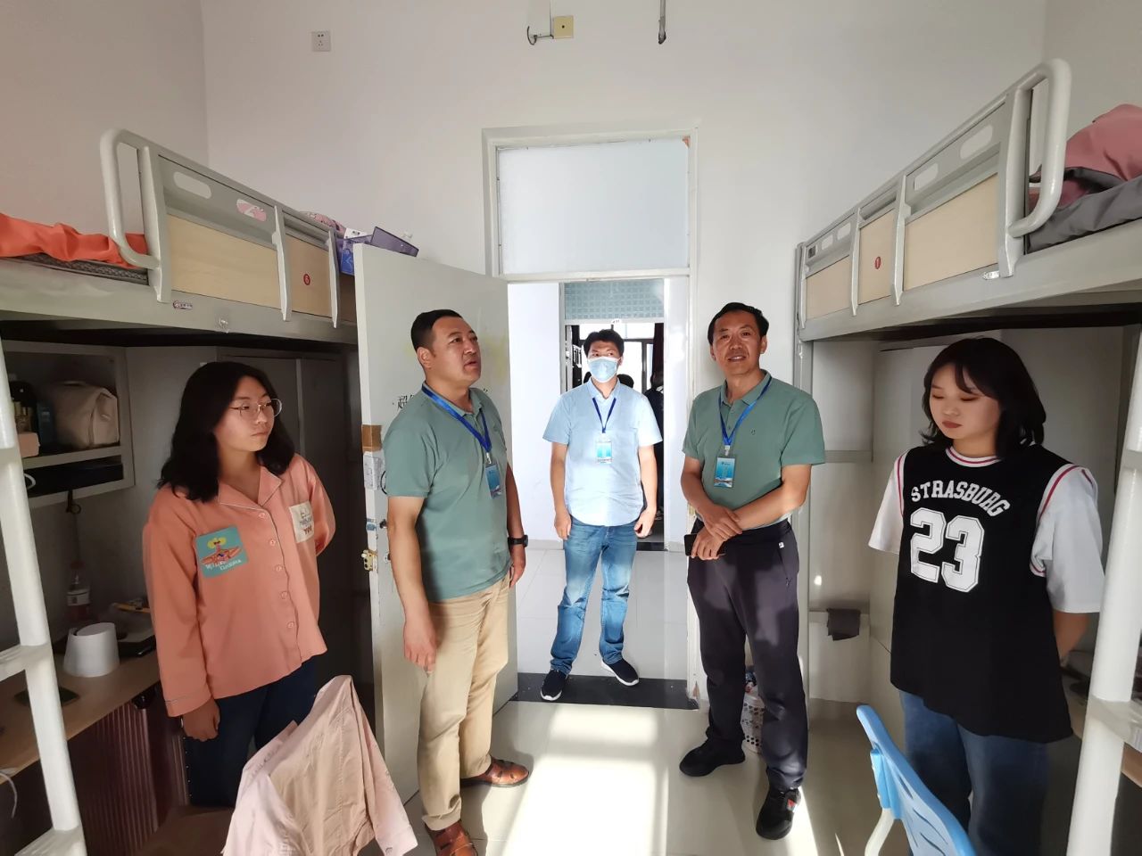在宿舍里,领导老师们询了问同学们入住情况,解答了一些同学们提出的问题,叮嘱同学们要尽快转换角色、融入大学集体、适应大学生活,做好疫情常态化的防控工作,对未来四年的大学生活乃至人生都有所规划,勉励同学们认真学习,发奋图强。