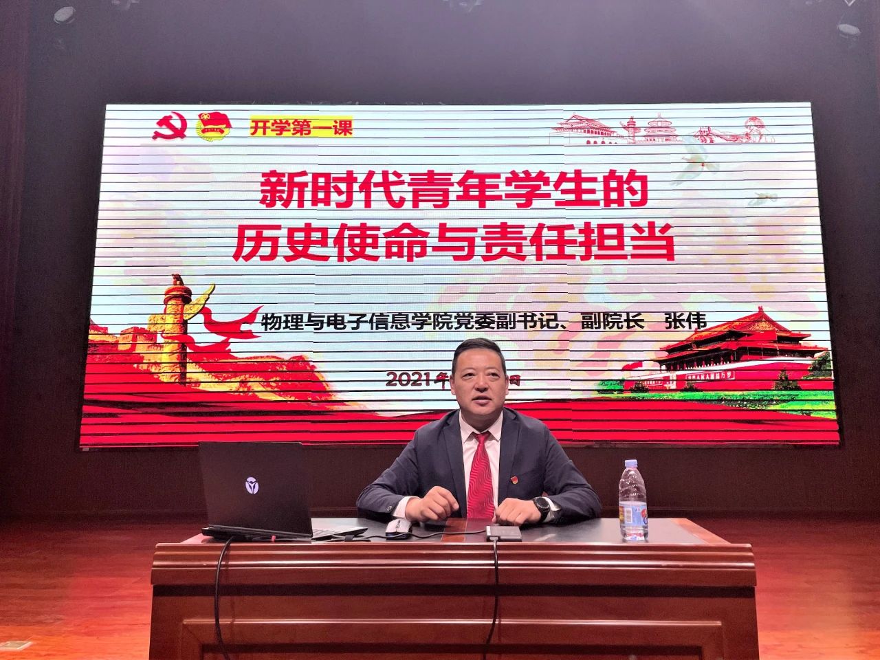 为帮助新生尽快转变身份角色,适应生活环境,明确大学学习目标,培养专业情志,合理规划人生,9月11日,我院于图书馆二楼学术报告厅召开了新生开学典礼暨入学教育大会。学院领导班子,各系系主任、副主任,教务办、实验中心、团总支、学就办相关负责人,2021级本硕各班班主任、辅导员以及2021级本硕学生共计300余人参加本次开学典礼,典礼由学院团总支副书记宝力尔老师主持。