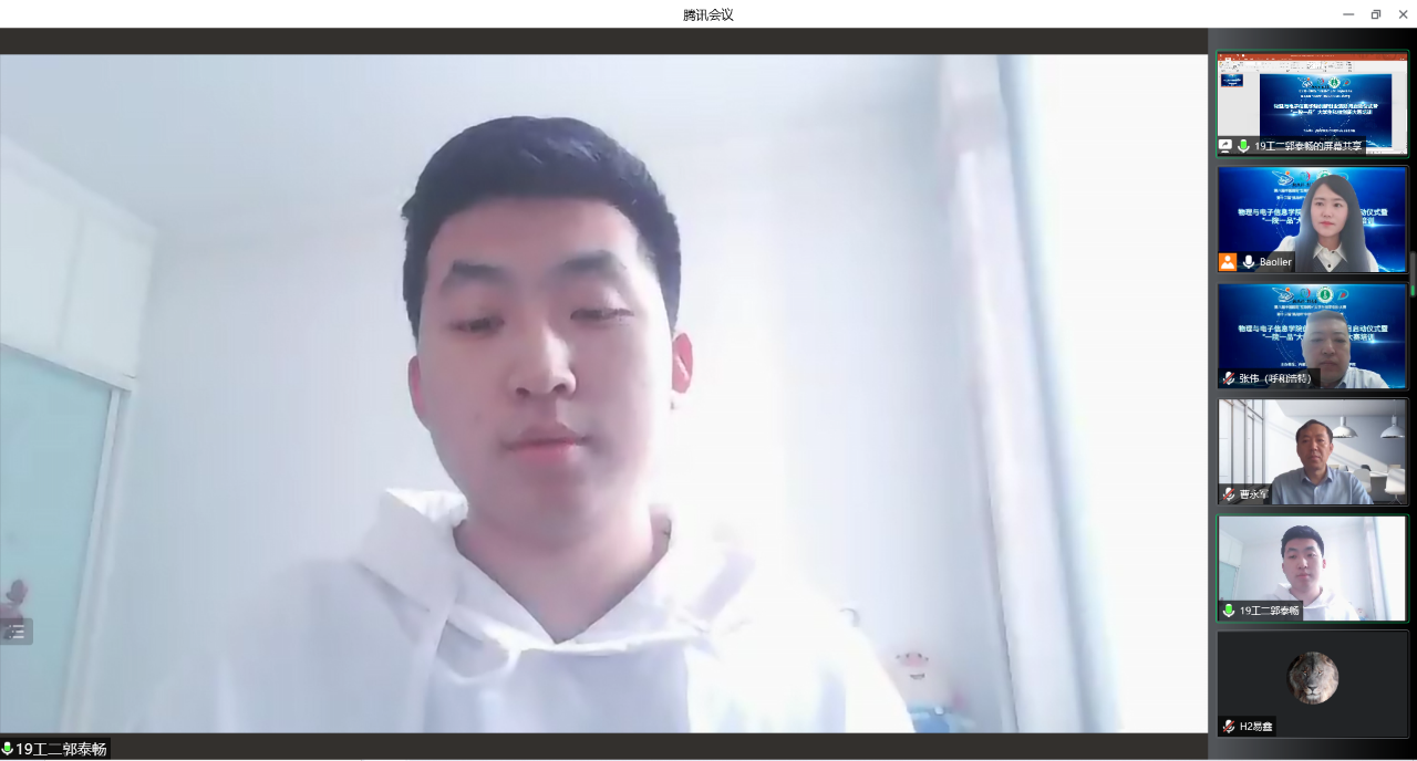 第二项,由全国物理实验竞赛三等奖获奖选手代表19级电子信息工程二班郭泰畅同学分享参赛心得体会。