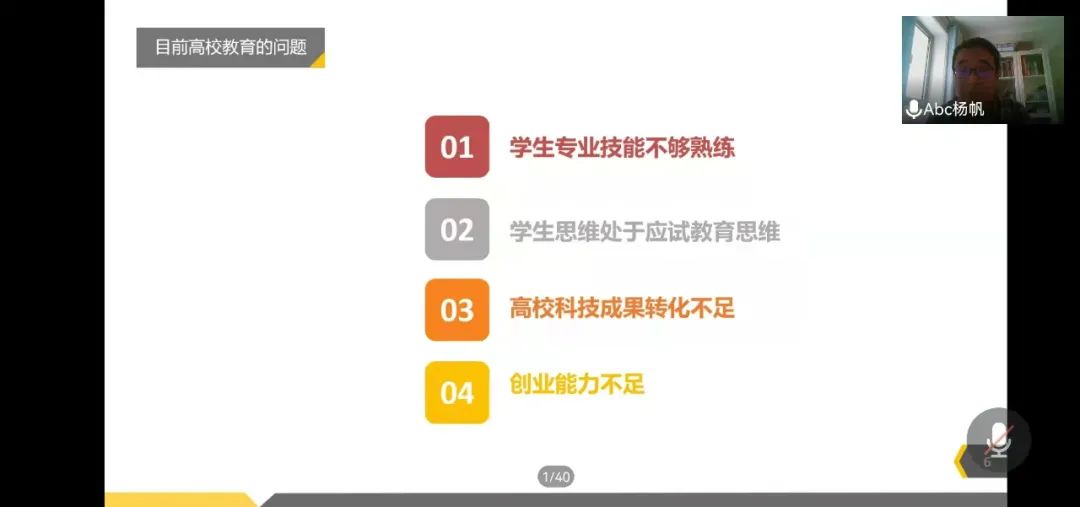 第四项,实践创新部副主任杨帆老师对“互联网+”“挑战杯”及学院本次大学生科技创新大赛相关内容进行了培训,帮助同学们进一步了解比赛规则以及注意事项。