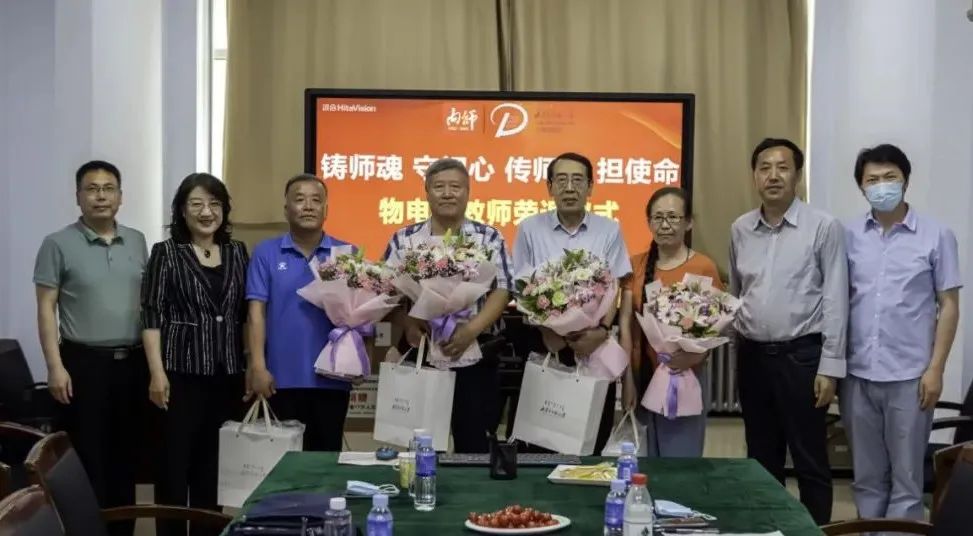 在欢送会上,学院年轻教师为每一位退休教师敬献鲜花,献上了全体教师的崇高敬意,也献上了自己的师恩难忘。