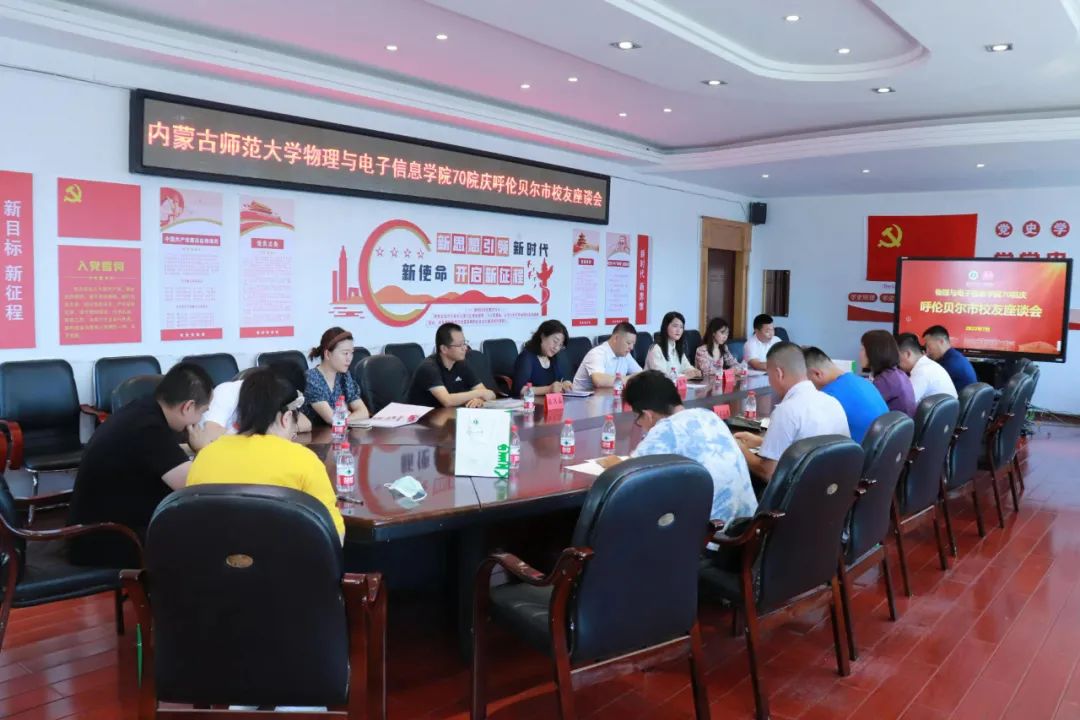 凝聚校友,汇聚真情。7月21日上午,yl23455永利集团70院庆呼伦贝尔市校友座谈会在海拉尔第一中学举行。呼伦贝尔市妇联党组书记、主席、内师大物理系88级物理蒙班乌兰托娅,海拉尔第一中学党委委员、副校长旦森扎布出席,学院党委书记刘美玲,副书记兼副院长张伟,综合办公室主任兼大学物理教学部主任张天臣,团总支副书记宝力尔以及在呼伦贝尔市工作的我院部分校友参加。座谈会由物电院2008级校友、海拉尔第一中学教师文成主持。