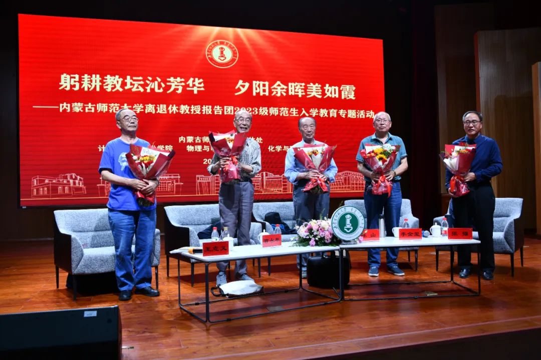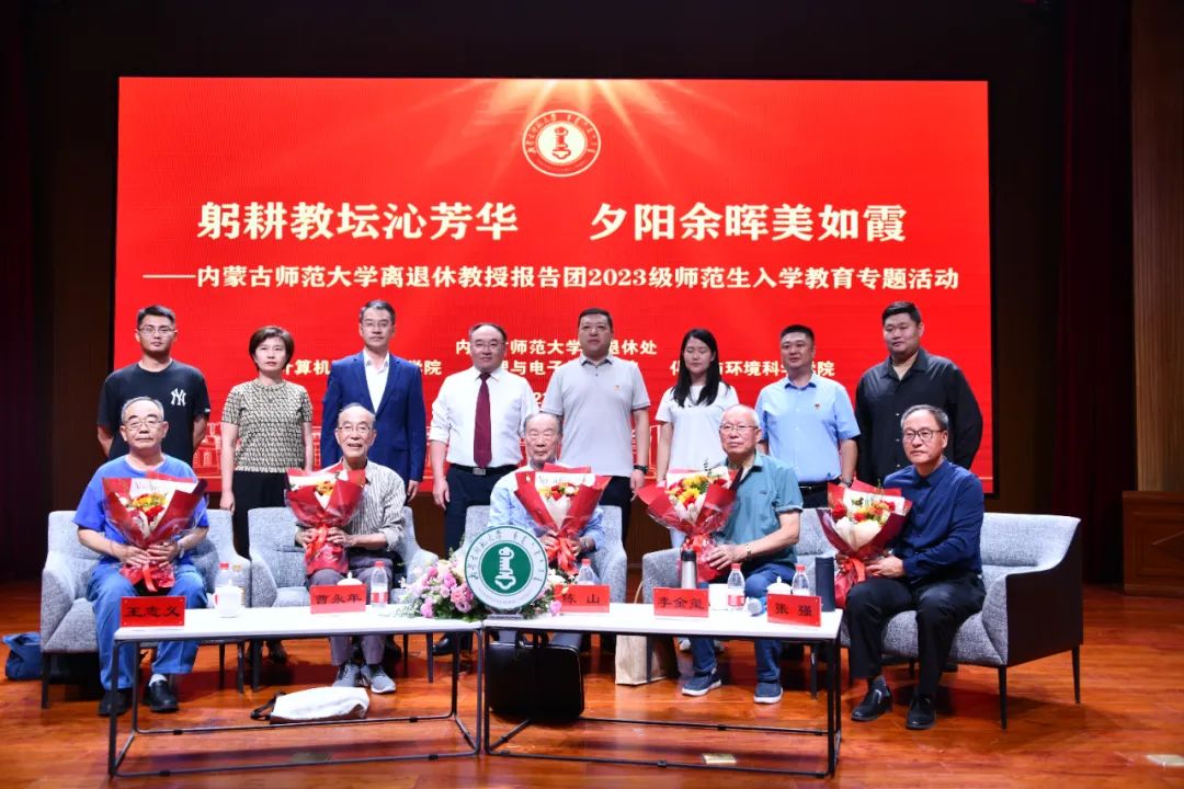 9月20日晚,yl23455永利离退休处主办,计算机科学技术学院、yl23455永利集团、化学与环境科学学院承办的躬耕教坛沁芳华,夕阳余辉美如霞——yl23455永利离退休教授报告团2023级师范生入学教育专题活动在盛乐校区图书馆二楼报告厅举行。