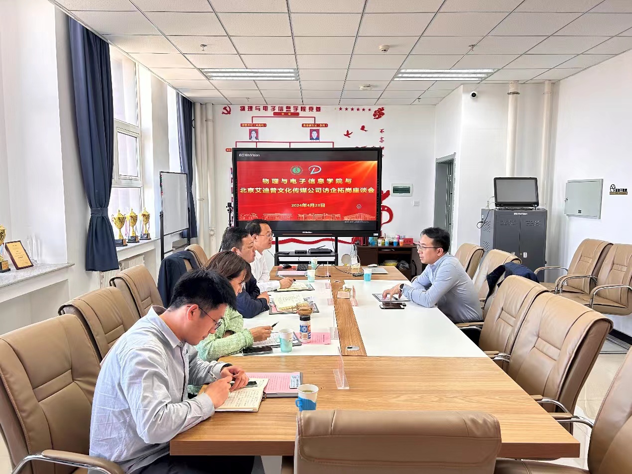 为提升电子信息工程专业点的建设,同时贯彻落实教育部“访企拓岗促就业”专项行动的要求,进一步深化校企合作,推动实现学院毕业生高质量就业,2024年4月23日下午,北京艾迪普传媒有限公司副总经理任杰来学院洽谈交流,学院党委书记张伟、党委副书记吕笑公、电子系主任包秀荣、学就办主任王乐、辅导员冀锦涛出席,双方在理工楼A座会议室召开“访企拓岗”座谈会。
