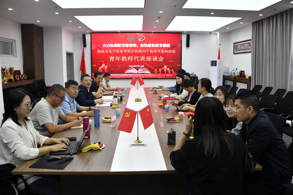 为深入学习贯彻习近平新时代中国特色社会主义思想,落实习近平总书记对教育工作的要求,全面贯彻党的教育方针,落实立德树人根本任务,大力弘扬教育家精神,进一步提升我院青年教师的专业素养,加强新时代高素质专业化教师队伍建设,喜迎第40个教师节的到来,9月10日,我院在理工楼A座701会议室召开青年教师座谈会。学院党委书记张伟,党委副书记、院长曹永军,党委副书记、副院长欧志强,副院长包黎红出席会议,青年教师代表、“两优一先”获奖教师、工会教师代表参加座谈会,座谈会由党委书记张伟主持。