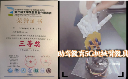 本次比赛旨在加强师范教育协同提质计划首师大组团院校之间的深入交流,着力提升师范生的创新精神和实践能力,推动本科教育教学水平的不断提高。竞赛分为初赛和复赛两个阶段,通过线上提交和现场实物演示的方式进行评比。经过激烈角逐,我院共有5项作品成功晋级决赛,在参赛过程中同学们展现出优异的创新实力和竞赛实力,每一件作品都凝聚了参赛学生的智慧和汗水。最终,由张院生老师指导、乐舒文等制作的“基于新课标理念的自制电磁学组合教具”获得一等奖,由杨帆老师指导、宋硕楠等制作的“星火燎原系列教具”获得一等奖;由杨帆老师指导、成佩轩等制作的“助聋5G机械臂教具”获得三等奖,由张林睿老师指导、朱越辉等制作的“水位报警器”获得三等奖;由张院生老师指导、唐铭浩等制作的“自制电动机—涡旋”获得优秀奖。
