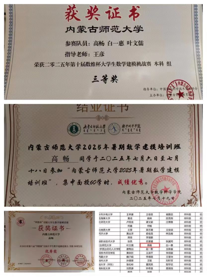 2024级物理学二班 共青团员 获得2025年数维杯大学生数学建模比赛三等奖