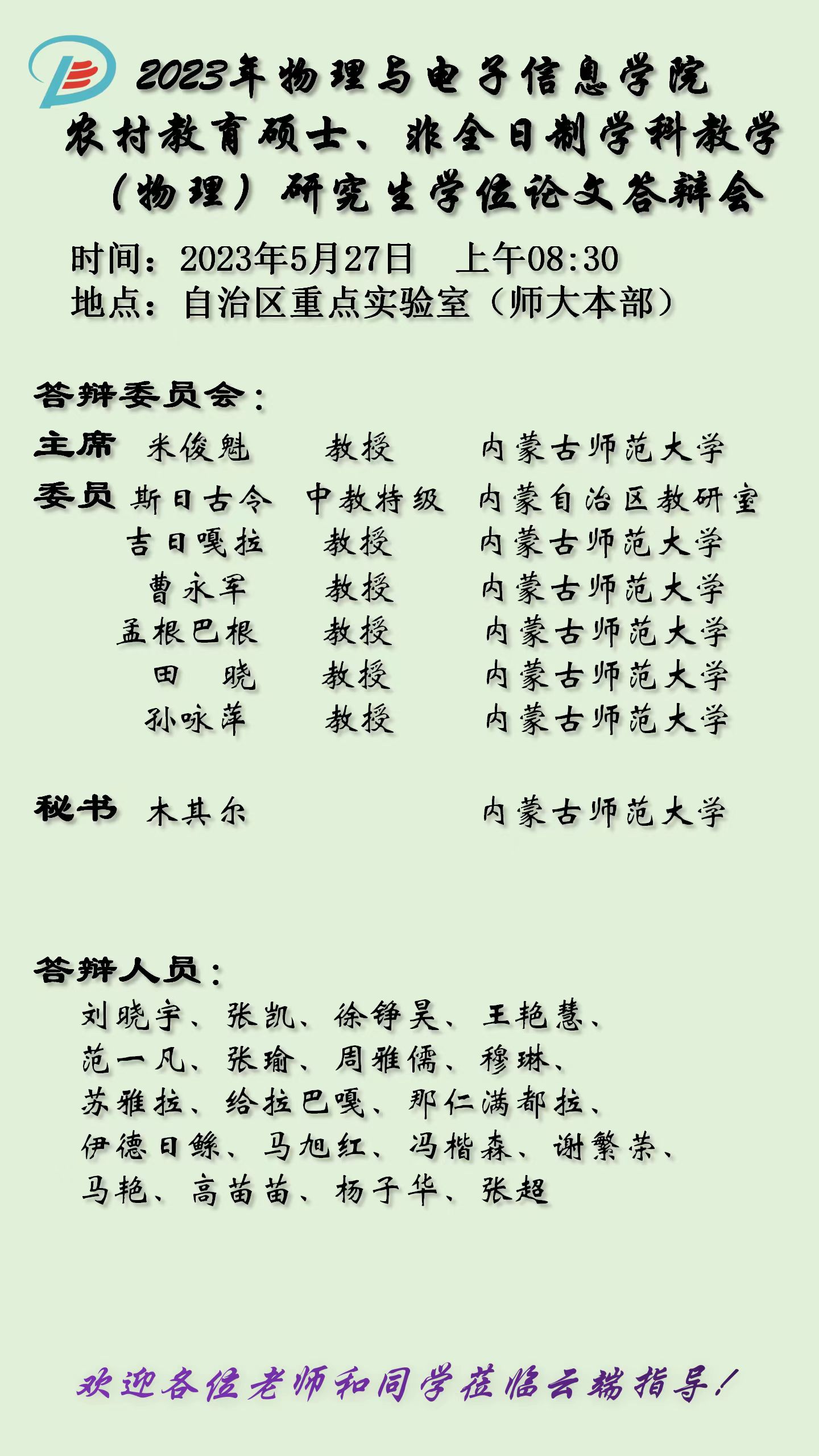 yl23455永利集团2023届硕士研究生学位论文答辩安排
