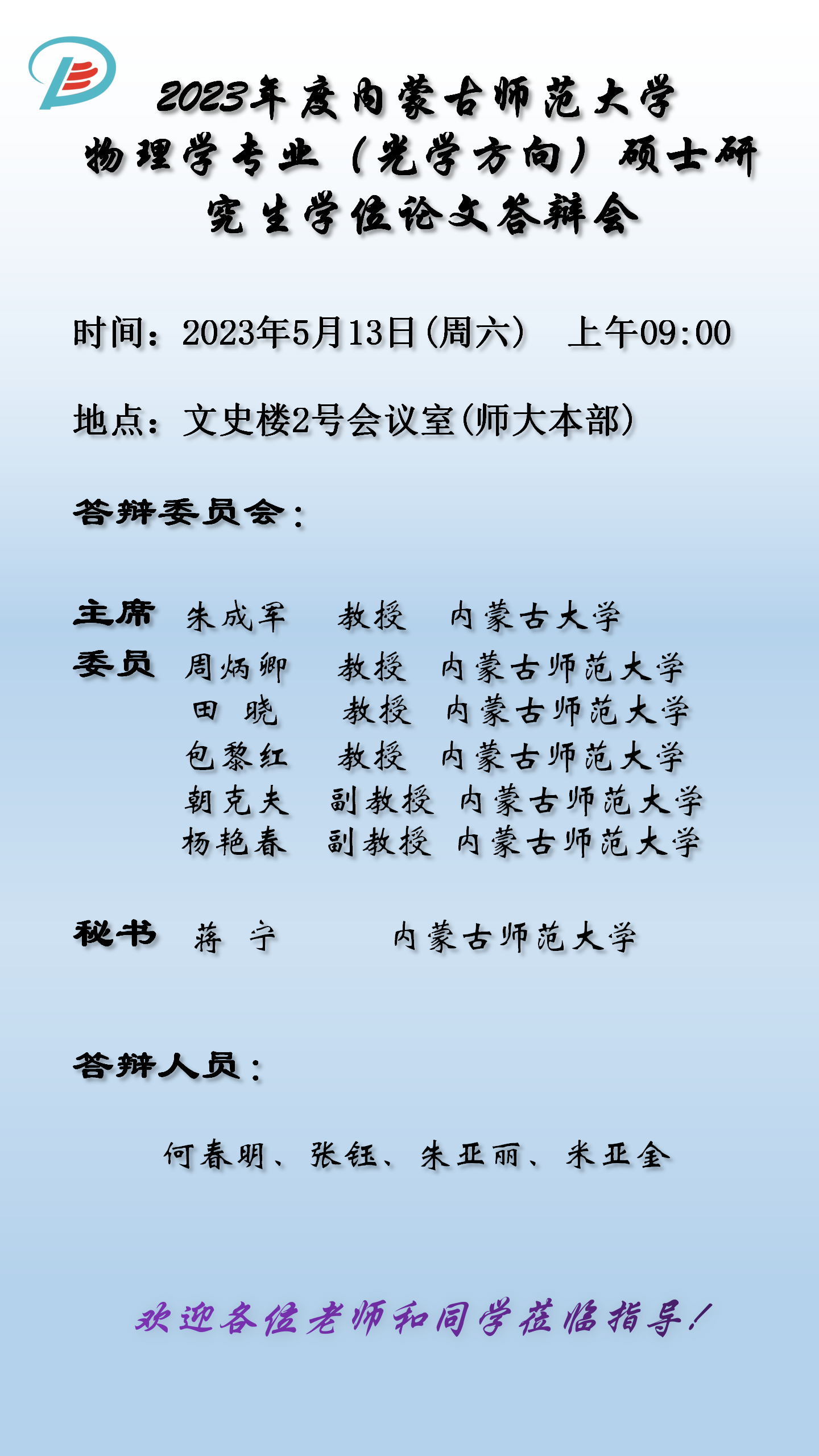 yl23455永利集团2023届硕士研究生学位论文答辩安排