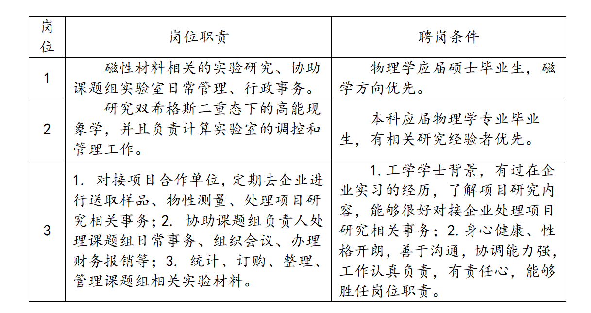 本次拟聘科研助理3人。主要协助课题组负责人开展课题研究,协助管理科研项目或平台(团队)日常工作。