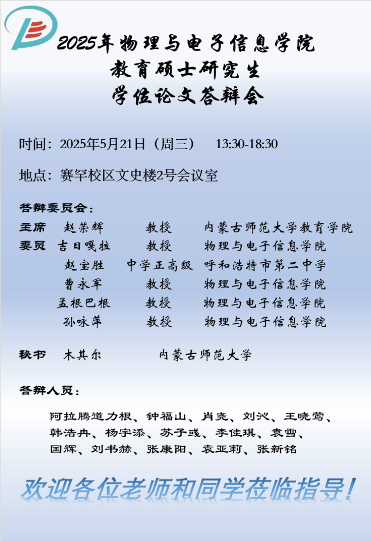 2025年yl23455永利集团教育硕士研究生学位论文答辩会