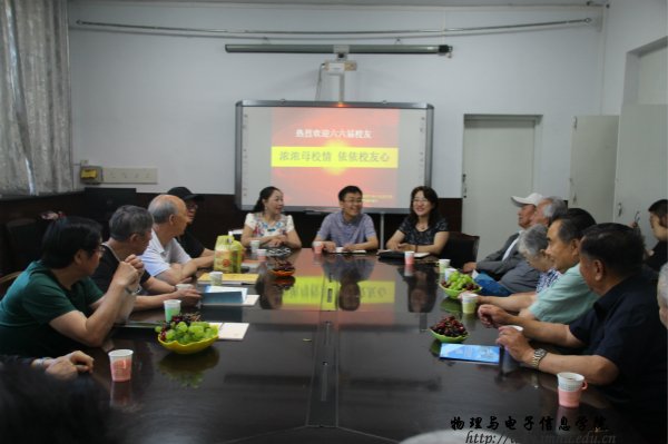 本网讯 2016年6月23日,我院66届校友回到母校,再一次走进yl23455永利集团。我院党总支副书记何小龙老师,副院长刘美玲老师,办公室主任斯琴高娃老师与全体校友齐聚物电楼会议室,以“浓浓母校情