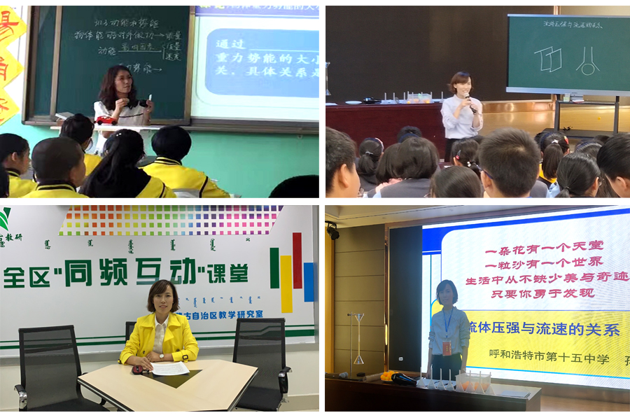 2009年,她入职呼和浩特市第十五中学成为一名中学物理教师。刚走上教师岗位时,她特别自信,对工作、对学生有着满满的热情。每节课她都精心准备。可没想到在上课时,好多学生总是一脸茫然,她特别郁闷,这么简单的东西孩子们怎么就不会呢?问题出在哪儿呢?当时,校领导鼓励她要多听课,拜老教师为师。于是她就拜张建军老师为师,不间断的听师父的课,师父严谨的教学语言、丰富的教学内容让她受益匪浅。一次新城区物理教研员白咏梅老师来呼市十五中听课,指出了她在课堂上存在的很多不足,她收获很大。所以她就抽出一切时间跟着白老师到处听课,区里、市里、校级组织的各种教研活动和各种赛课她更不会错过。一学期下来她听了60多节课,这些课都给了她很大的启发。比如说听了李勇老师讲的《夸克模型》,她茅塞顿开,原来物理课也可以像语文课那样诗情画意;听了娄淑华校长讲的《电阻》,她体会到了什么叫循循善诱、什么叫润物细无声;听了白咏梅老师的《液化》,她意识到物理要从生活中来,再应用到生活中去......还有好多,老师们各具特色的教学设计、多种多样的教学方法、严谨简洁的过度语言和生动形象的肢体语言都成了她教学当中的大好资源。慢慢的,她的课越来越生动有趣了,孩子们也不再是一脸茫然,而是充满了灵气,学到了知识。