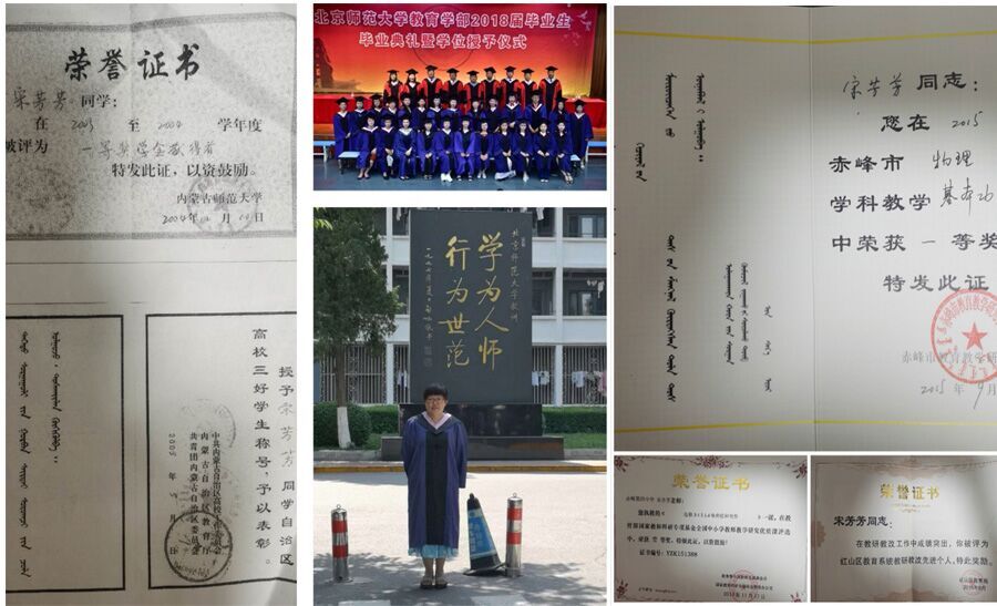 工作之余,宋芳芳不忘学习深造,2014年7月她考入北京师范大学教育学部学习教育管理,获得教育硕士学位,真正把她的教学和育人工作提升了到理论层次。她的硕士论文《教师自主支持行为对学生学习自我效能感的影响——基于高三物理课堂的实验研究》已应用于教学实践,促进了赤峰市第四中学桥北分校物理教学工作的发展。