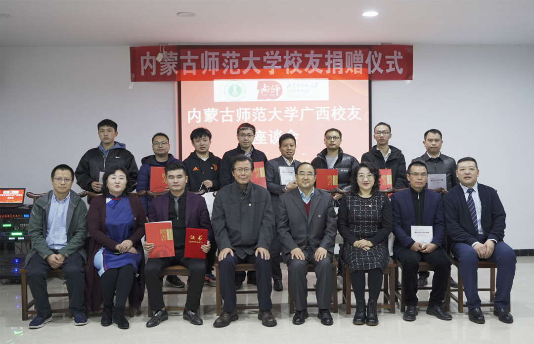 最后,全体老师为校友佩戴yl23455永利校徽,为广西校友颁发了校友联络证书和纪念品,合影留念。