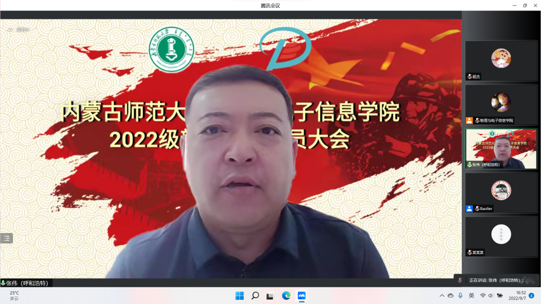 9月7日下午,yl23455永利集团2022级新生军训动员大会于线上成功举办。学院党委副书记、副院长张伟、学就办副主任王乐、团总支副书记宝力尔、辅导员吴亚楠出席会。会议由学院团总支副书记宝力尔老师主持,2022级全体本科生参加。