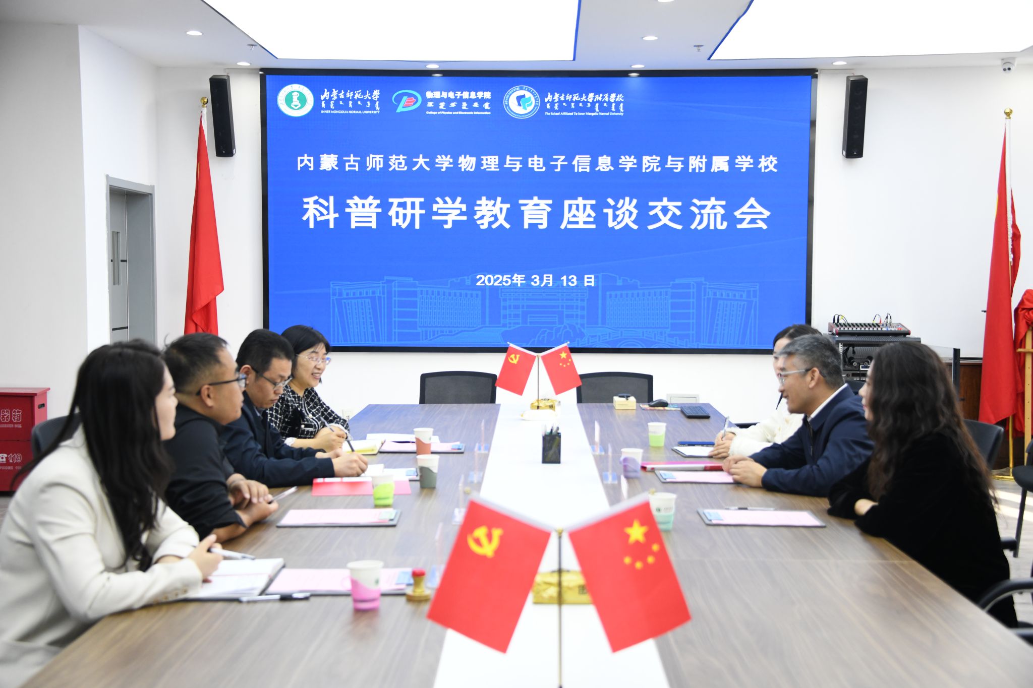 为促进我院与中学之间的合作与交流,推动科普研学教育的发展,3月13日,我院在理工楼A座701会议室与附属学校开展科普研学教育座谈交流会。附属学校副校长李晓波、党政办于淼、团委鲍雪倩、yl23455永利集团党委副书记、副院长欧志强、物理系主任孙咏萍、实践与创新工作室负责人杨帆出席会议,会议由团总支书记宝力尔主持。