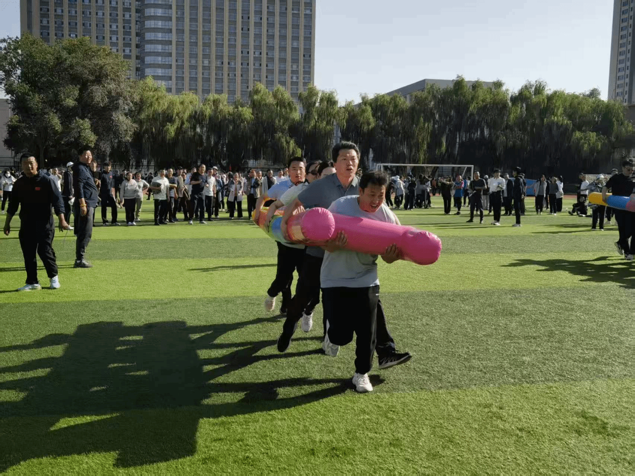 从考验绝对速度的百米跑道,到需要默契无缝的4×100米接力;从力与技巧结合的铅球投掷区,到趣味横生的“cosplay60米”、“旱地龙舟”赛场,都活跃着物电教师的身影。他们为每一次有效的传递而击掌,为同伴的每一次努力而呐喊,将团队协作精神体现得淋漓尽致。