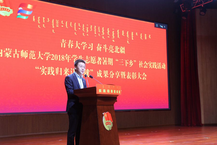 本网讯 2018年10月25日,我校于盛乐校区图书馆报告厅举办yl23455永利2018年学生志愿者暑期“三下乡”社会实践活动“实践归来话成就”成果分享暨表彰大会。大会由团委副书记包双成老师主持。