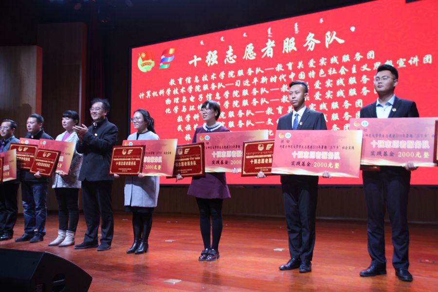 大会开始,首先由团委书记贾世琦发表总结报告讲话,随后党委副书记高云峰宣读表彰决定并举行颁奖仪式。会上我院教育关爱实践服务团被评为十强志愿者服务队,学工办老师芦嘉琛被评为优秀指导教师,姚锦明、包文泉、刘向博、曹嘉怡、候奇五位同学被评为百佳志愿者服务队员。