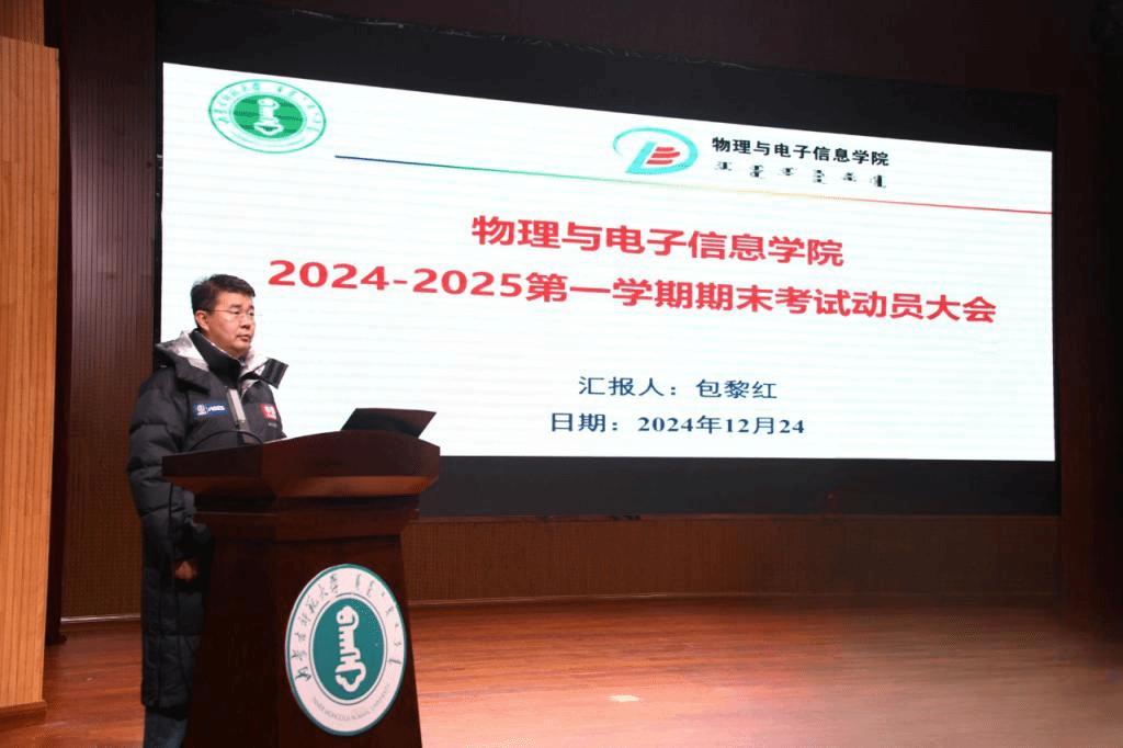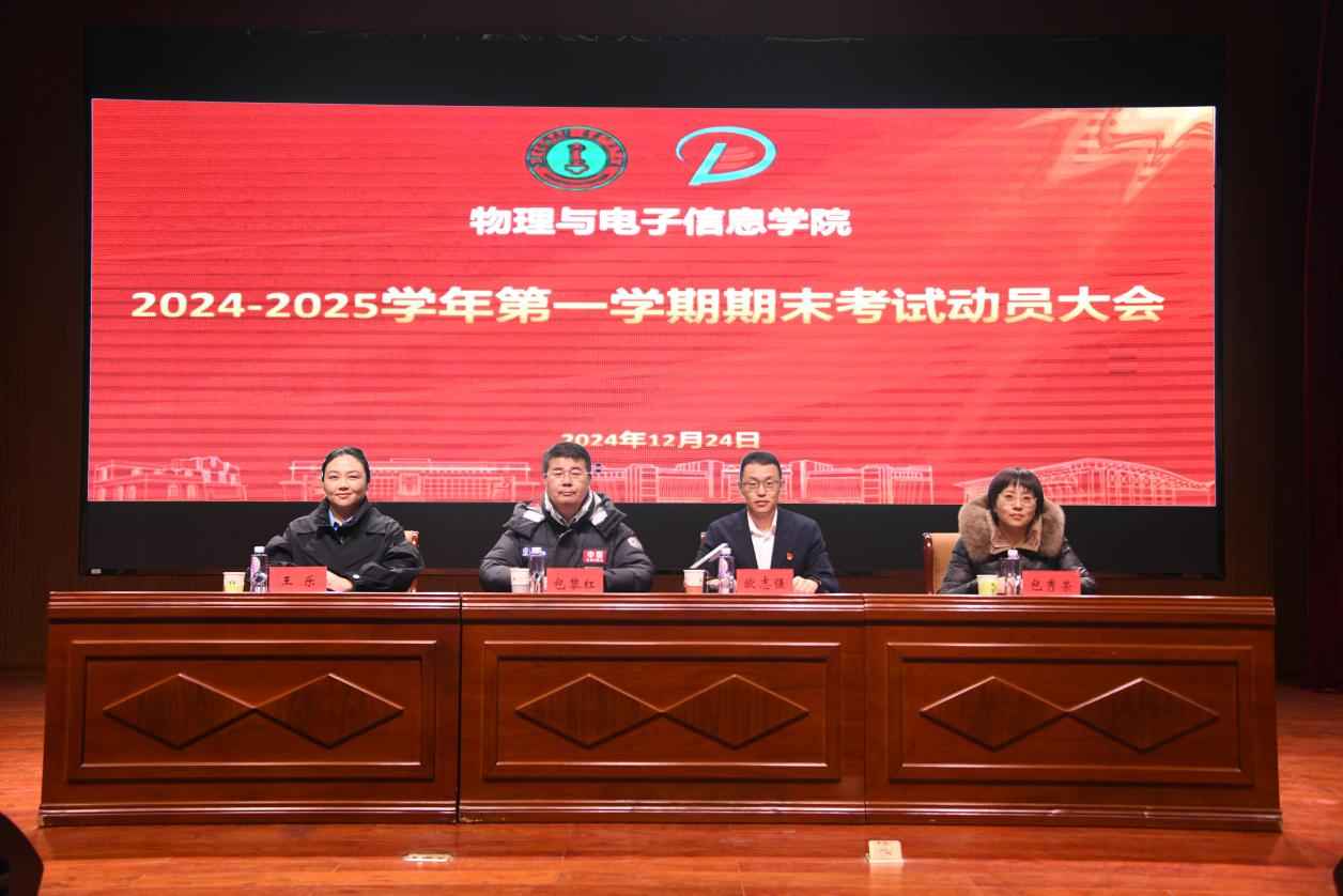 为增强学生的诚信意识,端正学生对学习和考试的态度,加深学生对校规校纪的理解,严格遵守考试规章制度,营造积极向上的考试氛围,进一步严肃公平公正的考风考纪,12月24日下午,我院召开2024—2025学年第一学期诚信考试动员大会。yl23455永利集团副院长包黎红,电子系主任、2024级电子信息科学与技术班班主任包秀荣,学就办主任王乐,班主任代表出席会议,本、硕、博学生400余人参加会议。会议由党委副书记、副院长欧志强主持。