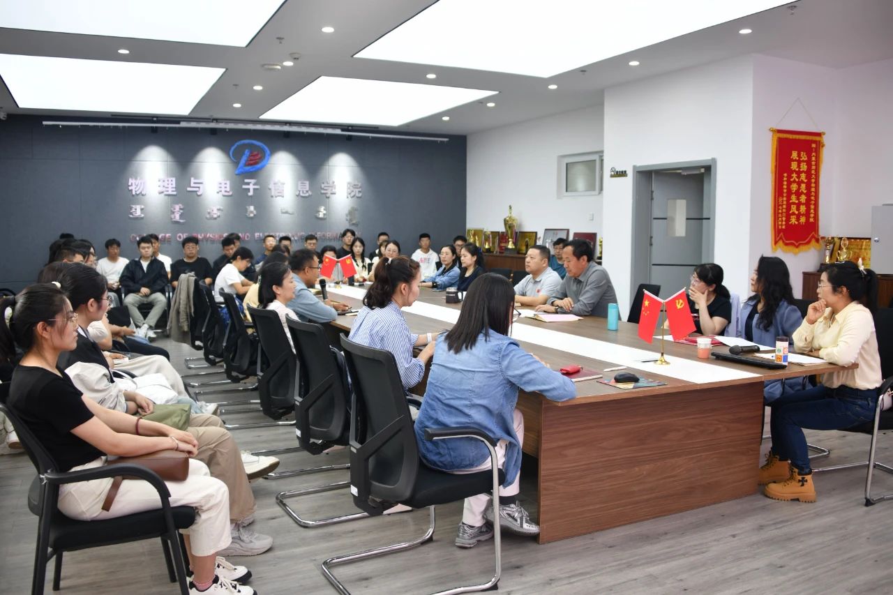9月5日下午,我院在理工楼A701会议室召开了2024级专硕研究生导师见面会。党委书记张伟,党委副书记、院长曹永军,党委副书记、副院长欧志强,学院研究生导师(学科物理、电子信息)以及2024级专硕研究生新生参加会议。会议由物理系主任、教育硕士学位点负责人孙咏萍老师主持。