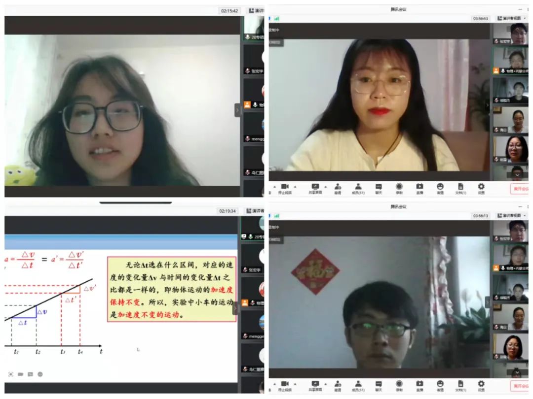 在汇报环节,同学们的展示可谓各有千秋,精彩纷呈。每个同学展示了15分钟的教学片段,虽然是线上教学,但是同学们都有设计、有条理、清晰流畅的呈现出课堂教学的风采。