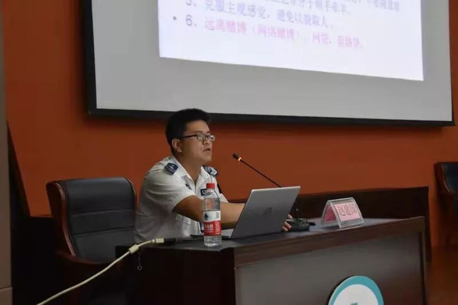 赵站长首先为同学们介绍了近年来全国及周边高校曾发生的一些安全事件案例,指出了校园安全工作的紧迫性和必要性。在同学们关切的目光下,他详细并耐心地讲解了安全教育的七个方面。一是防盗:寝室财产安全。注意养成出门随时反锁寝室门的习惯。二是防骗:生命与财产安全。不轻易相信任何推销人员,不随意订阅入室推销的辅导资料和随意报培训班。三是防“中枪”:网络安全。不在网络上随意传播未经核实的、虚假的信息,当心陌生人骗自己和家人,不要轻易相信网友。特别注意警惕“校园贷”,针对无钱可骗的学生,不法分子常会通过高科技手段诱骗学生向借款平台借钱,然后再进行诈骗。四是防火防电:生命安全。禁止在寝室使用热得快、电热水壶、电饭煲等大功率电器。五是防毒品:拒绝各类毒品诱惑。学会辨别各类毒品,珍爱生命,远离毒品。六是防丢失:各种卡证的安全。各种卡证不要都放在一起,分类保管好,丢失后及时去指定地方挂失等等。七是交通安全:不随意乘坐黑车,夜间打车谨记车牌号码。出行选择正规交通工具,不要轻易搭乘黑车。 随后,学院实验中心副主任那日苏老师针对实验室安全专门进行了讲解。他以高校实验室安全事故案例入手,解释和分析了导致实验室安全事故的多种因素。强调了要遵守学院实验室安全管理制度,增强实验室安全意识,积极学习掌握相关实验室安全知识。那老师总结说到:希望同学们都积极参与学院的安全防控体系建设,注意防范实验日常操作中的安全隐患,形成良好的实验室安全素养。
