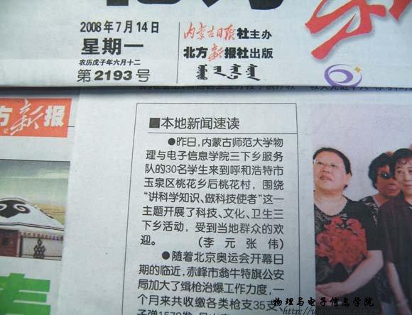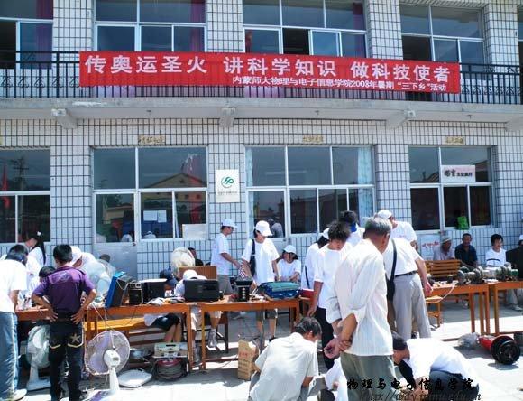 yl23455永利集团志愿者服务队曾荣获2006年度全区大中专学生暑期“三下乡”社会实践活动“优秀志愿者服务队”,现有成员30余名,暑假期间服务队将围绕科技支农、科技兴农等社会热点,在呼市周边农村以及其它地方开展为期一个月的“科技宣传和义务维修”活动,为当地农民群众传授科学知识,并解决部分农民朋友的实际困难。