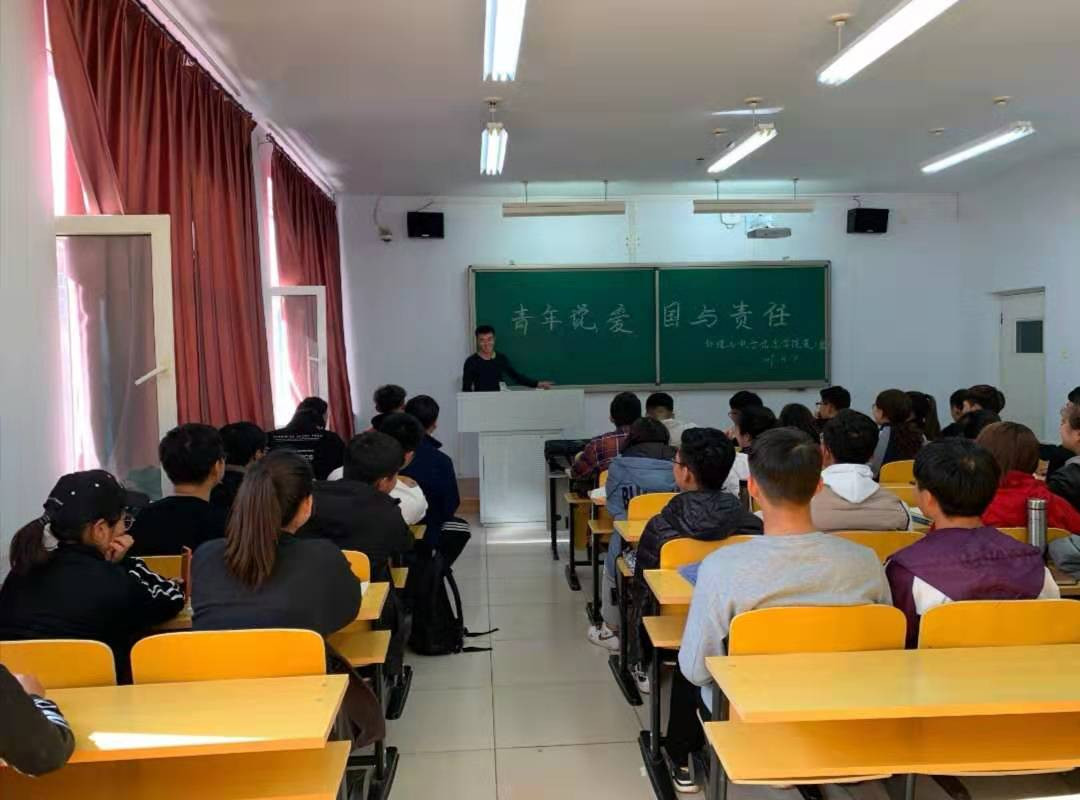 为深入学习习近平新时代中国特色社会主义思想,激发团员青年爱祖国担大任的使命感和责任感,我院组织学生以班级为单位召开“青年说·爱国与责任”主题团日活动。