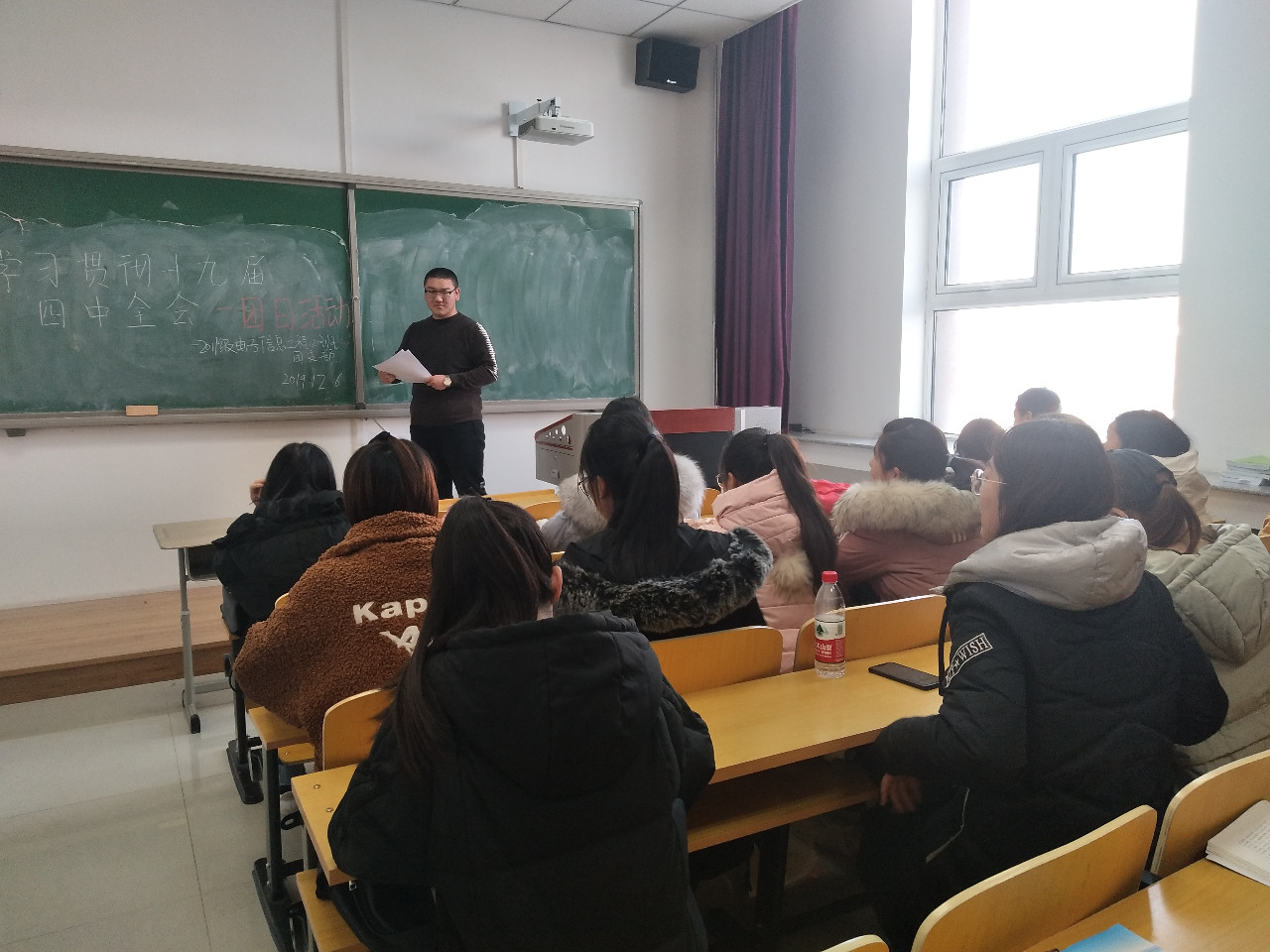 为学习贯彻党的十九届四中全会精神,进一步让学生领悟党的十九届四中全会精神内涵,把党的思想与实际生活相结合,我院各团支部积极开展学习党的十九届四中全会主题团日活动。