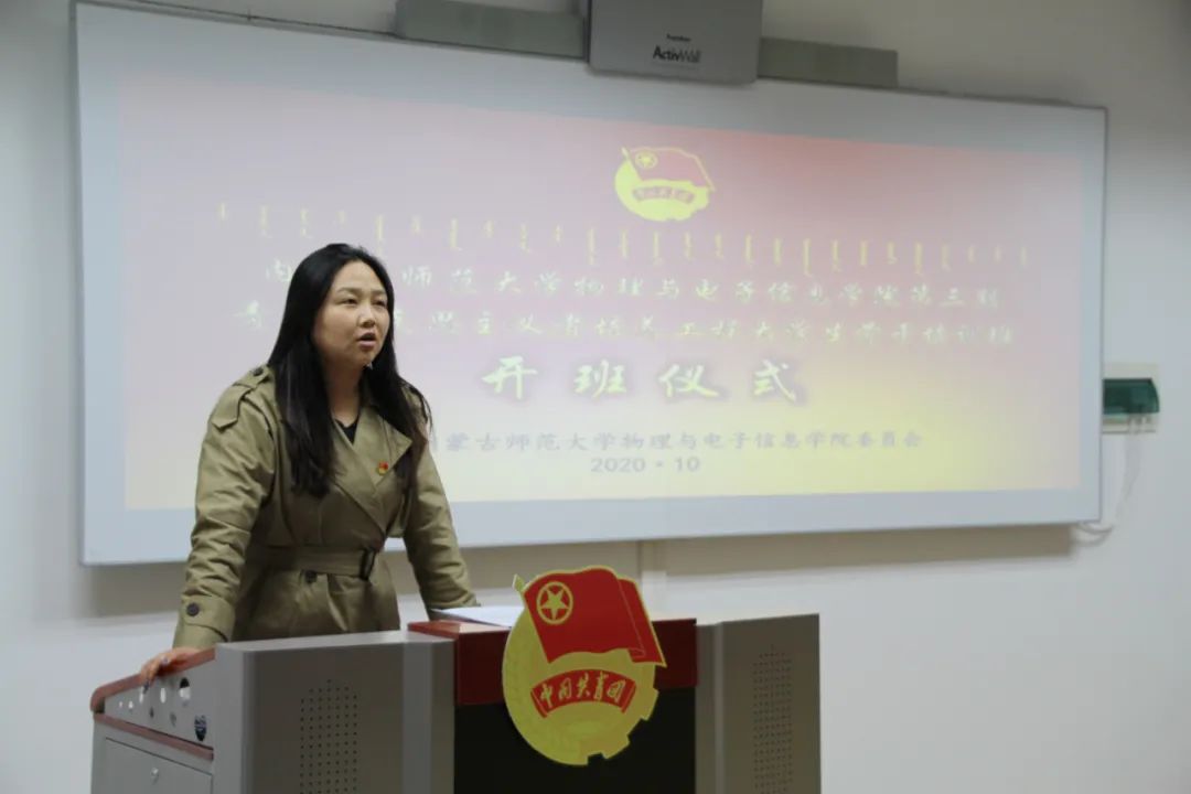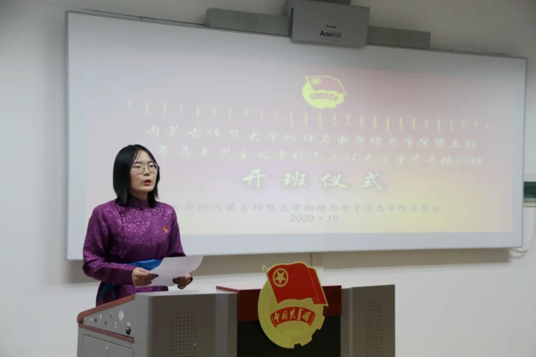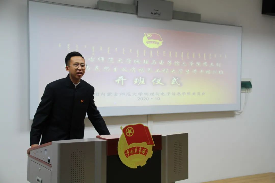 开班仪式上,宝力尔老师介绍了举办青马班的意义、本期青马班的培训纪律及日程。王乐老师就学生干部应具备的品质提出了具体要求,嘱咐大家作为学生的表率应乐于奉献、坚韧不拔。宋鑫伟老师讲述了自己对青马班的认识和理解,分享了曾经作为青马班学员的学习经历。培训学员代表海兰作了表态发言,她表示,青马班是同学们锻炼品格意志、提高工作水平和思想觉悟的大课堂,作为青马班的一员,在今后的学习工作中会更加努力,严于律己,发挥学生干部的模范作用。