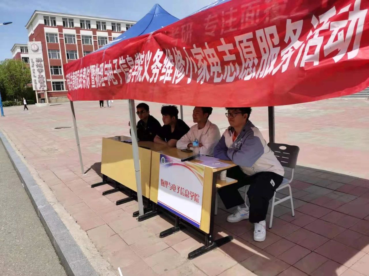 为深入学习贯彻习近平总书记在党史学习教育动员大会上的重要讲话精神和在参加十三届全国人大四次会议内蒙古代表团审议时的重要讲话精神,进一步深化民族团结进步教育,紧紧围绕学史明理、学史增信、学史崇德、学史力行,紧密结合共青团工作和团员青年实际,引导我院同学乐于助人的美好品德,解决我校师生的实际问题,通过实践进一步提升我院同学的动手能力和专业素养,丰富同学们的课余生活,我院志愿服务队于5月15、16日中午在群鸿餐厅西门举办了义务维修家电志愿服务活动。