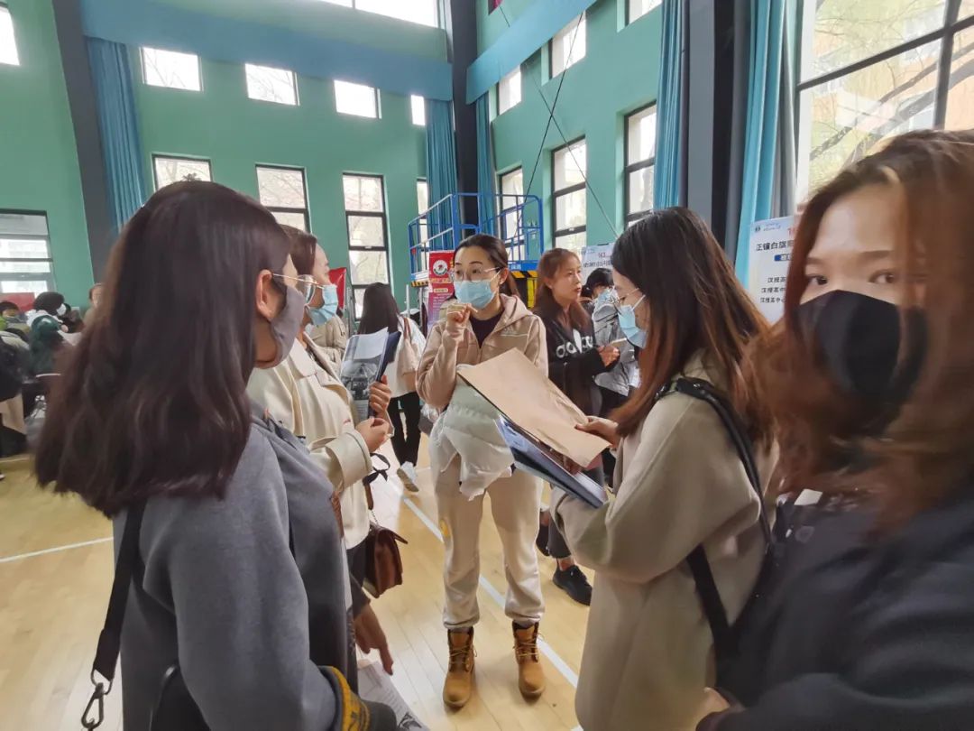 我院高度重视两场大型招聘会,学就办副主任、毕业生班主任共4名教师代领我院150多名应、往届毕业生参加此次招聘会,截止目前近半数参会学生正在和应聘的单位进行工作洽谈。