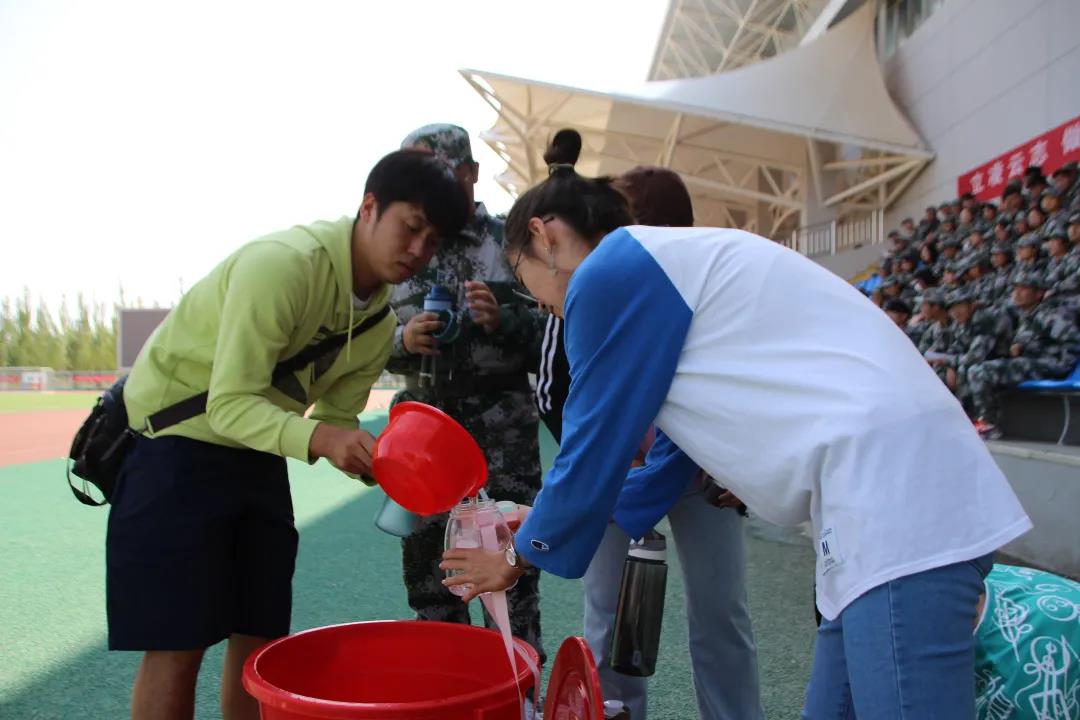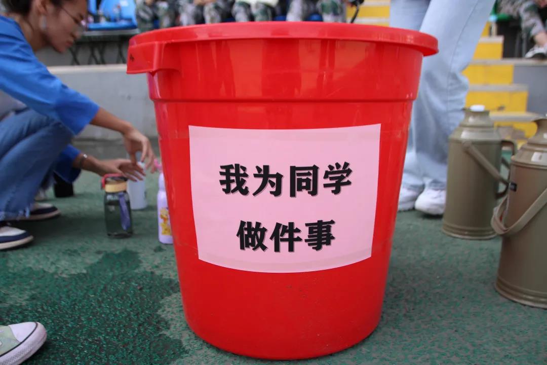 这个小红桶,每年都会如约来在军训的操场上,为我们物电院军训的新生们带来甘甜的慰藉。学生会的学长学姐们牺牲午休时间,无惧正午毒辣烈日,时刻考虑军训同学们的需求,为口干舌燥的学弟学妹们送来甘泉,“金银花”,“胖大海"无一不是学长学姐的用心,有应必回,亲历亲为,一言一行,都展现着物电院学生会的精神风貌。