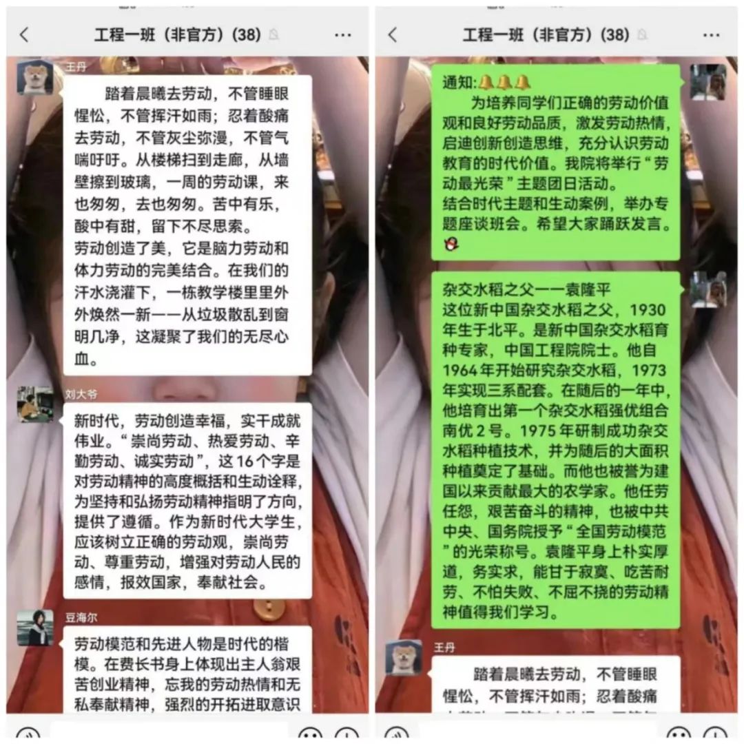 本次活动通过座谈、分享、辩论等多种形式展开,培养了同学们正确的劳动价值观和良好劳动品质,激发了劳动热情,启迪创新创造思维,充分认识劳动教育的时代价值。进一步树立了尊重劳动,劳动光荣的意识。同学们纷纷表示新时代青年要积极弘扬“劳动最光荣”的精神,脚踏实地,奋发有为,努力争当青年先锋。