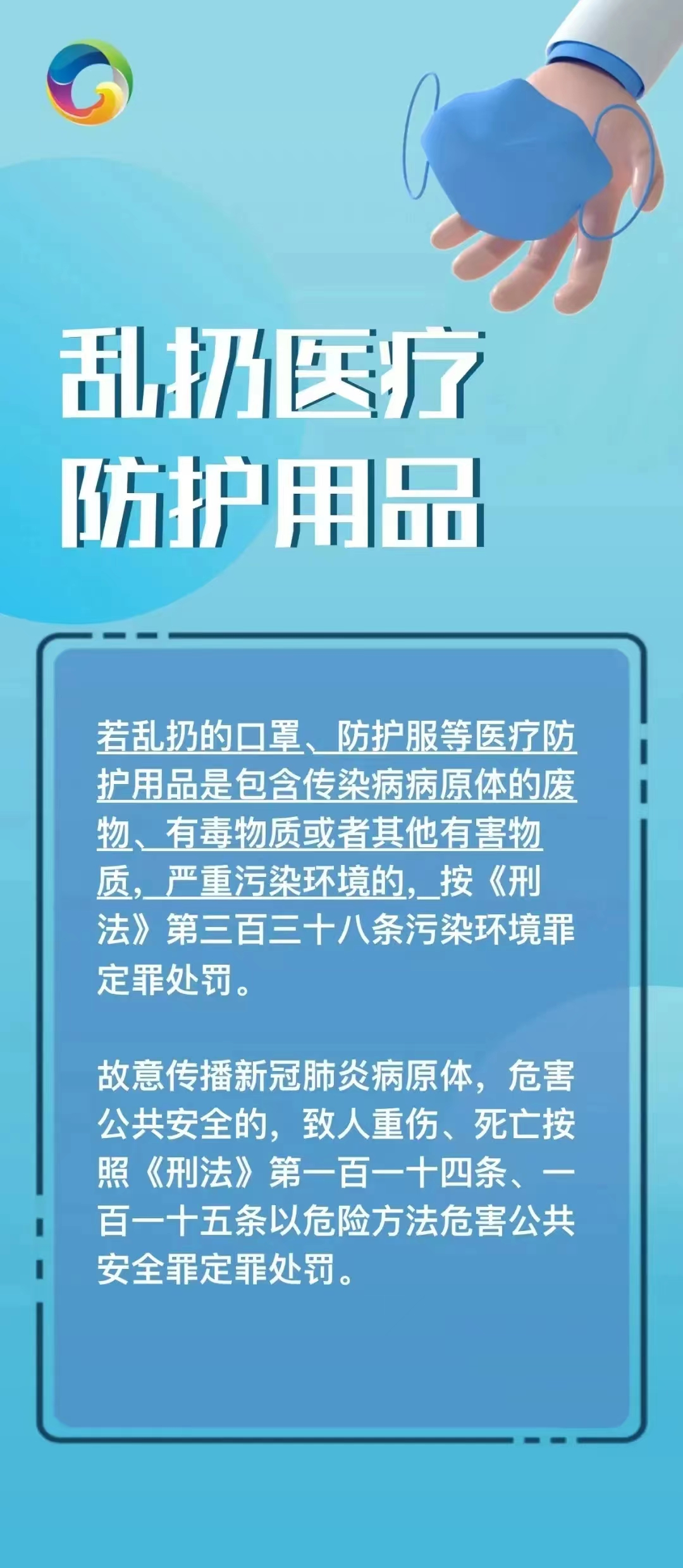13、违反疫情防控规定,乱扔口罩、防护服等医疗防护用品等,要承担法律责任吗?