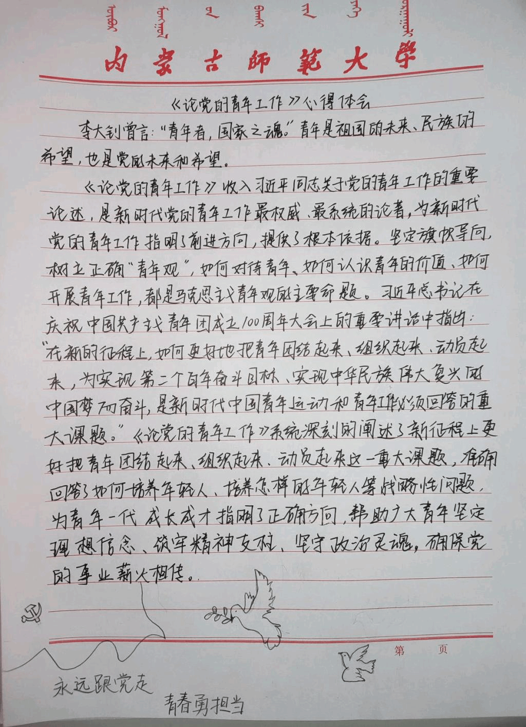 疫情无情人有情,疫情终会散去,静待春暖花开。为丰富疫情期间静默管理生活,使同学们过得充实、有意义,提高自身文化素养,营造浓厚的学习氛围,yl23455永利集团团总支组织开展“阅读一本经典书目,提升本领学识”活动,组织我院广大青年阅读《论党的青年工作》这一著作。