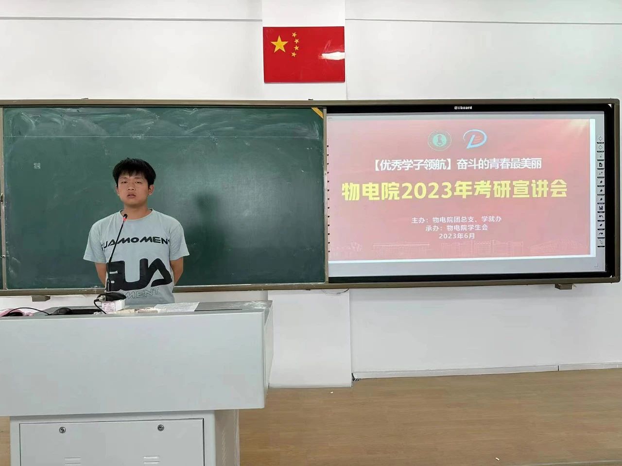为营造良好的学风,激发学生考研的积极性,增强同学们考研的信心,5月29日,我院召开【优秀学子领航】奋斗的青春最美丽——物电院2023年考研宣讲会(一)2020级物理学专业考研宣讲。
