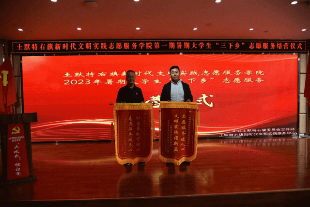 “土右旗是座志愿服务之城,爱上志愿服务,爱上土右旗……”来自yl23455永利集团的学生协日嘎分享着自己的志愿服务感受,在土默特右旗新时代文明实践志愿服务学院大学生暑期“三下乡”志愿服务活动结营仪式上,旗人民政府副旗长谢岷、孙文秀为大学生志愿者们颁发荣誉结业证,yl23455永利集团党委书记张伟、内蒙古农业大学机电工程学院院长张永为土右旗新时代文明实践服务中心赠送锦旗,旗委常委、政府副旗长英春希望志愿者们把土右旗作为“自己的第二故乡”,常回家看看、常回家听听、常和老乡唠唠、常帮老乡干干,共同努力为土右旗新时代文明实践事业贡献更多力量。